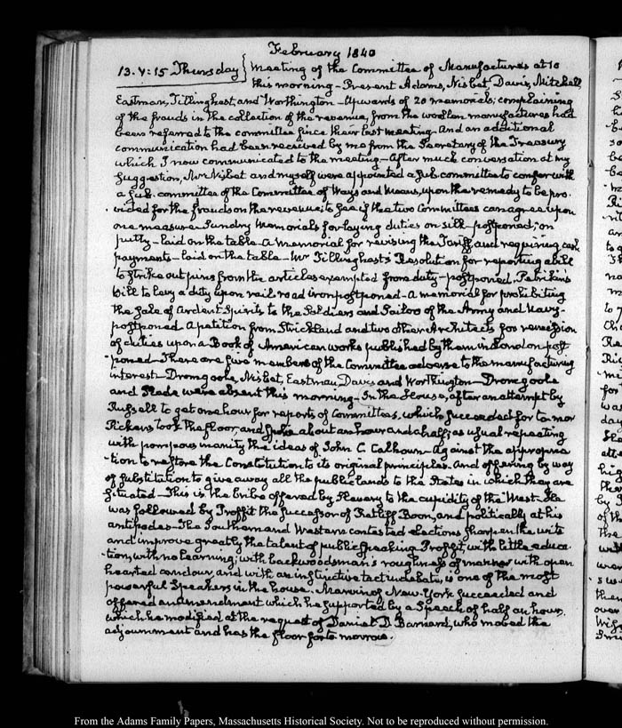 View full, authoritative transcriptions with page images of the diaries at John Quincy Adams Digital Diary part of the Primary Source Cooperative at the MHS.