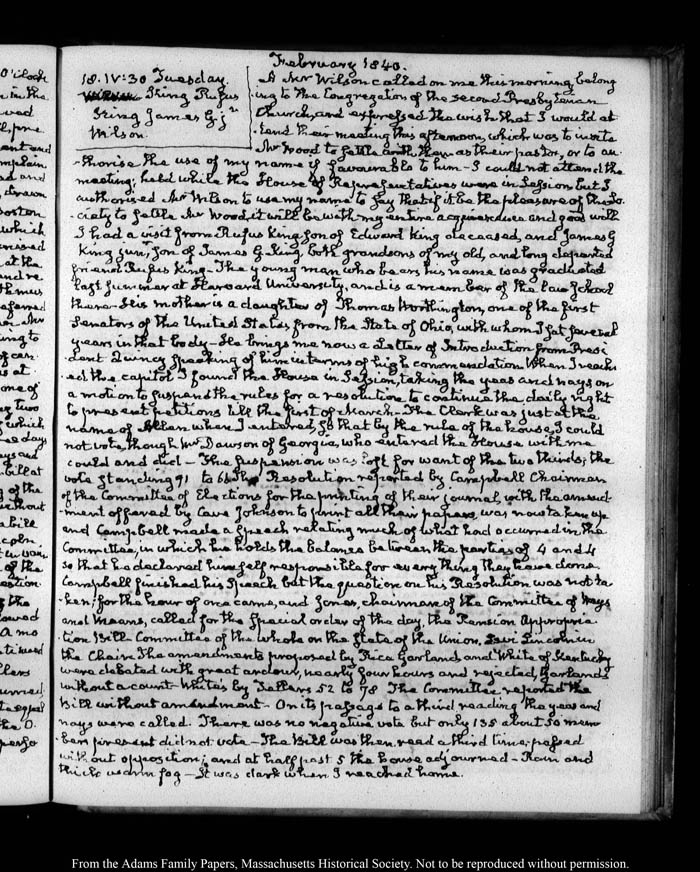 View full, authoritative transcriptions with page images of the diaries at John Quincy Adams Digital Diary part of the Primary Source Cooperative at the MHS.