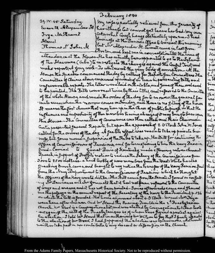 View full, authoritative transcriptions with page images of the diaries at John Quincy Adams Digital Diary part of the Primary Source Cooperative at the MHS.