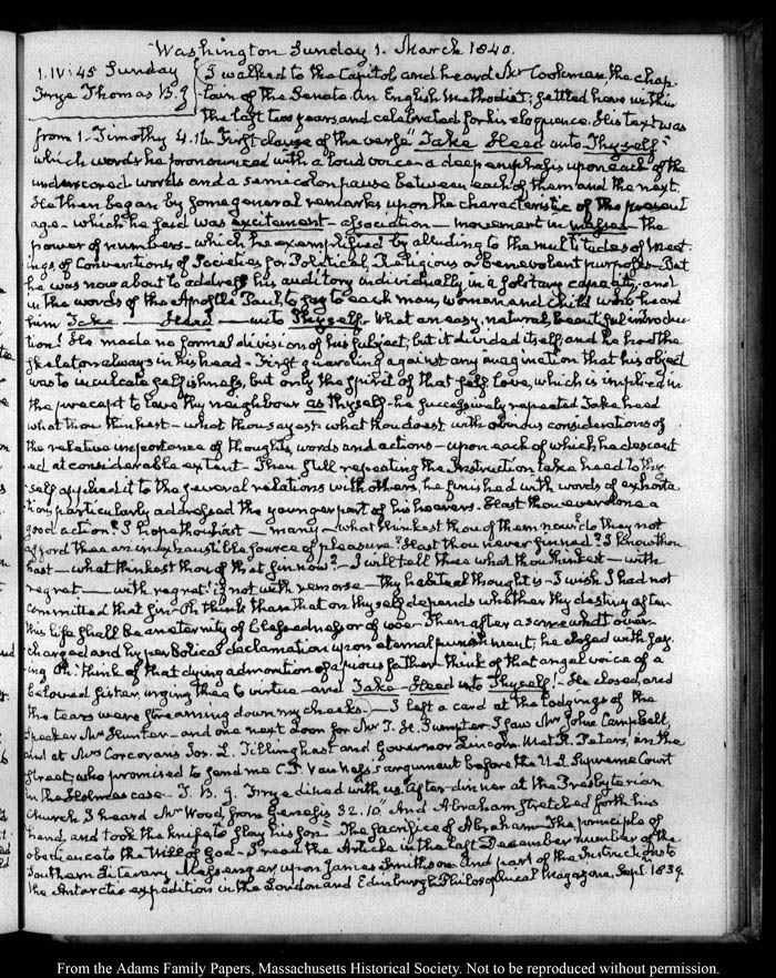 View full, authoritative transcriptions with page images of the diaries at John Quincy Adams Digital Diary part of the Primary Source Cooperative at the MHS.