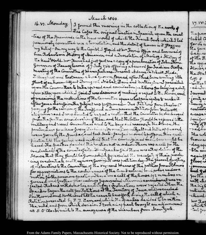 View full, authoritative transcriptions with page images of the diaries at John Quincy Adams Digital Diary part of the Primary Source Cooperative at the MHS.