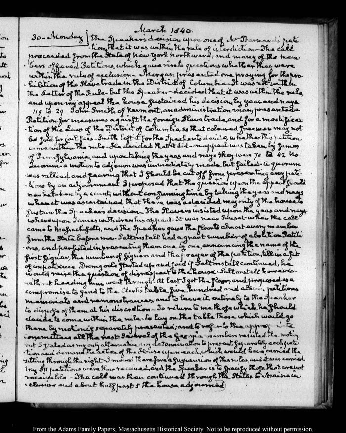 View full, authoritative transcriptions with page images of the diaries at John Quincy Adams Digital Diary part of the Primary Source Cooperative at the MHS.
