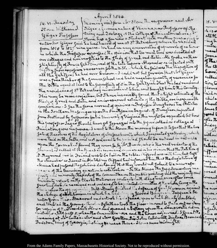 This is our legacy JQA diaries website and allows researchers to view the physical diaries page-by-page.