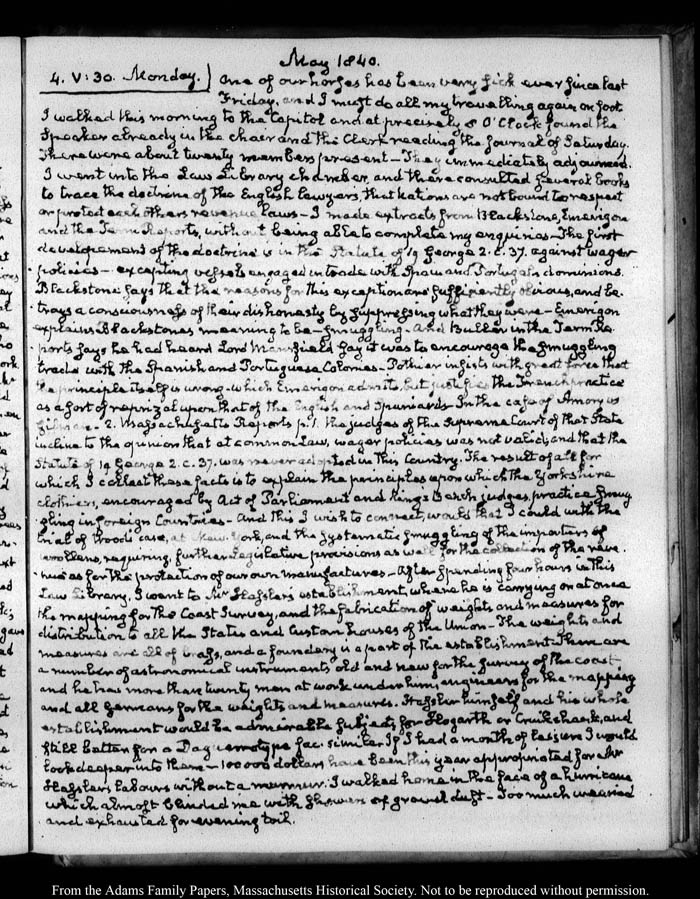 View full, authoritative transcriptions with page images of the diaries at John Quincy Adams Digital Diary part of the Primary Source Cooperative at the MHS.