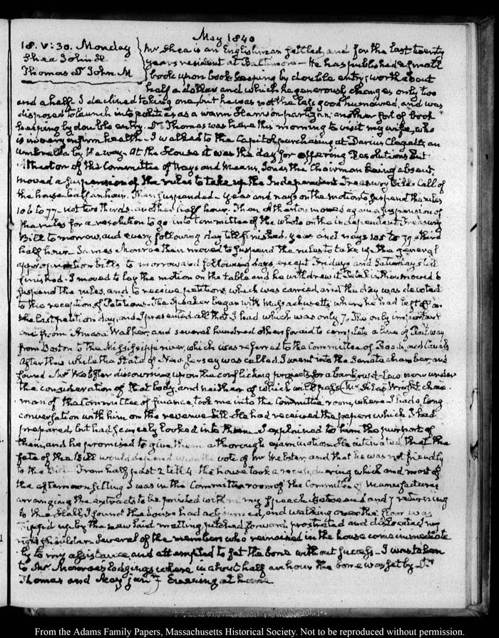 View full, authoritative transcriptions with page images of the diaries at John Quincy Adams Digital Diary part of the Primary Source Cooperative at the MHS.
