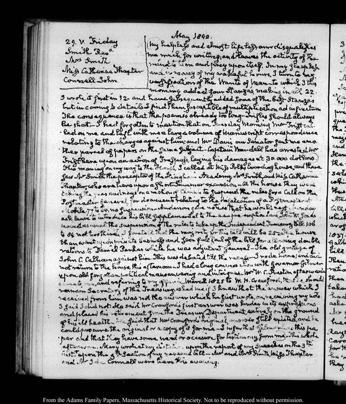 View full, authoritative transcriptions with page images of the diaries at John Quincy Adams Digital Diary part of the Primary Source Cooperative at the MHS.