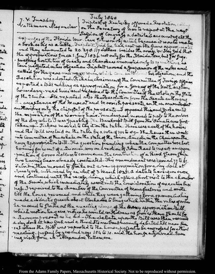 View full, authoritative transcriptions with page images of the diaries at John Quincy Adams Digital Diary part of the Primary Source Cooperative at the MHS.