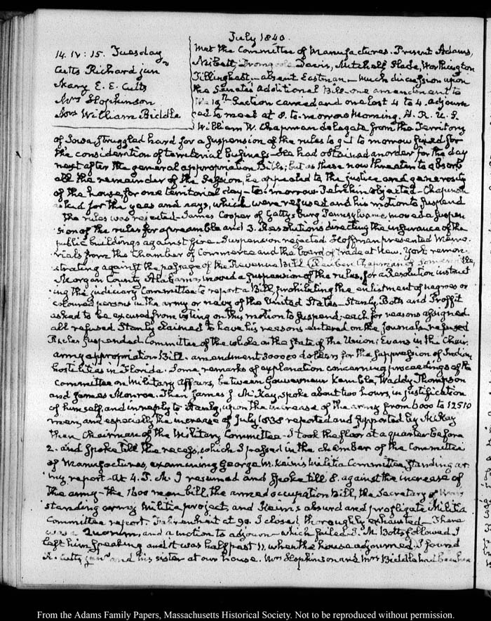 View full, authoritative transcriptions with page images of the diaries at John Quincy Adams Digital Diary part of the Primary Source Cooperative at the MHS.