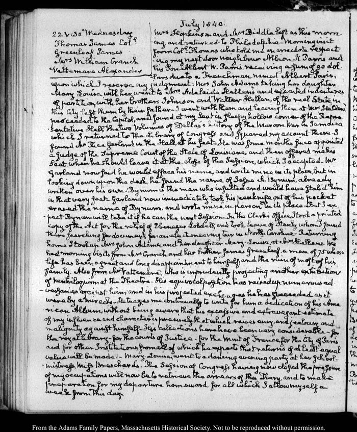 View full, authoritative transcriptions with page images of the diaries at John Quincy Adams Digital Diary part of the Primary Source Cooperative at the MHS.