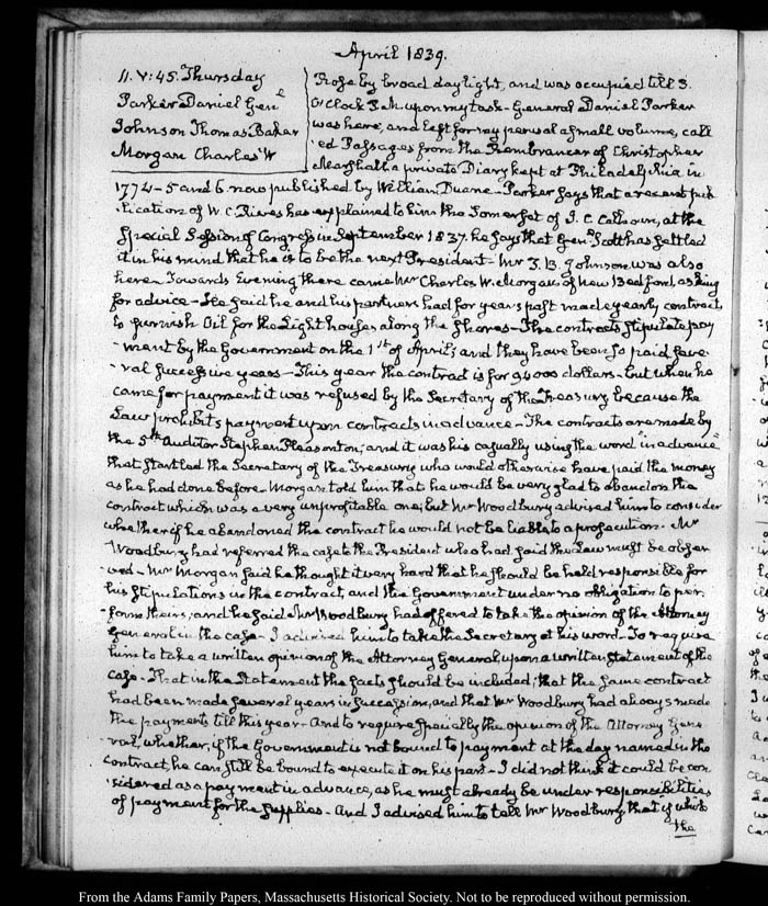 View full, authoritative transcriptions with page images of the diaries at John Quincy Adams Digital Diary part of the Primary Source Cooperative at the MHS.