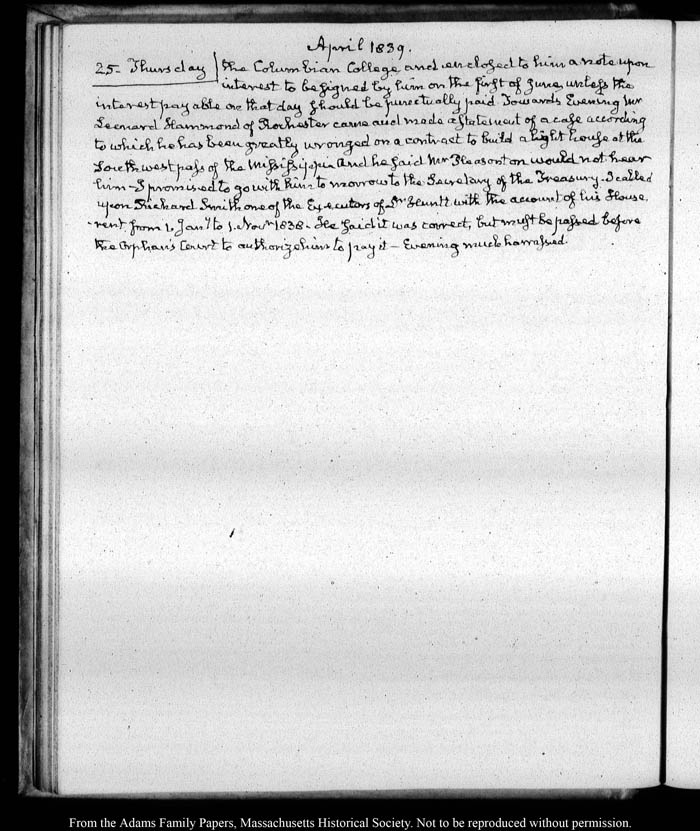 View full, authoritative transcriptions with page images of the diaries at John Quincy Adams Digital Diary part of the Primary Source Cooperative at the MHS.