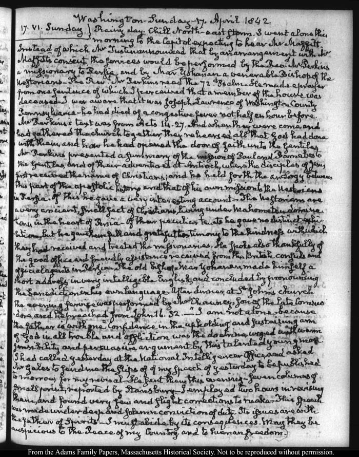 View full, authoritative transcriptions with page images of the diaries at John Quincy Adams Digital Diary part of the Primary Source Cooperative at the MHS.
