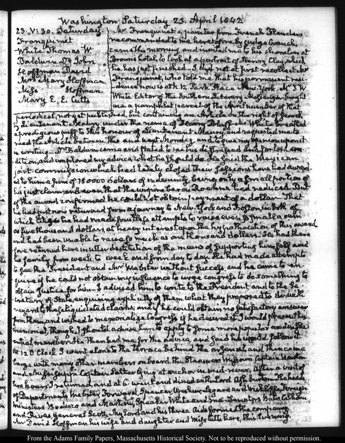 View full, authoritative transcriptions with page images of the diaries at John Quincy Adams Digital Diary part of the Primary Source Cooperative at the MHS.
