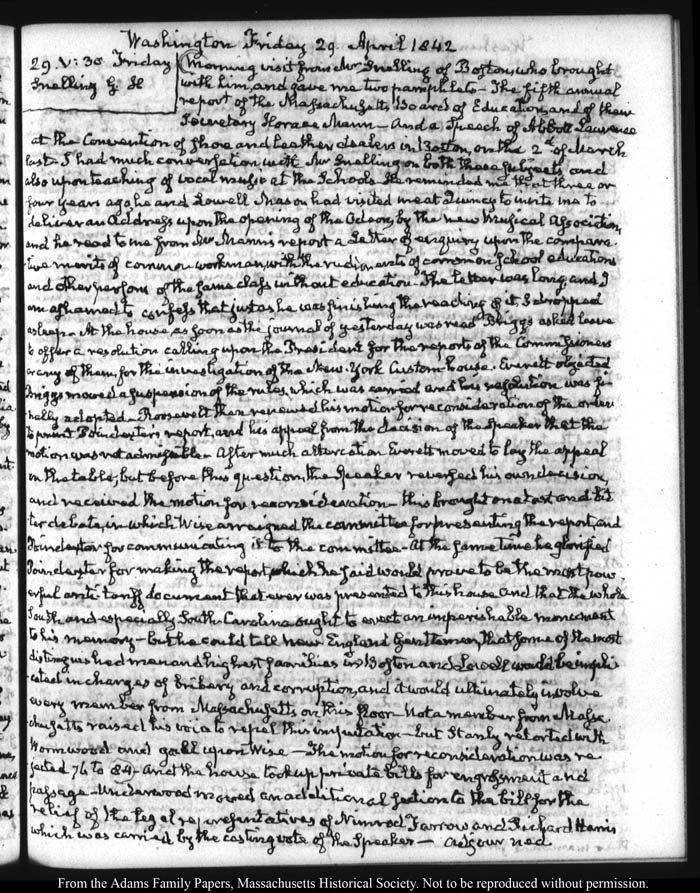 View full, authoritative transcriptions with page images of the diaries at John Quincy Adams Digital Diary part of the Primary Source Cooperative at the MHS.