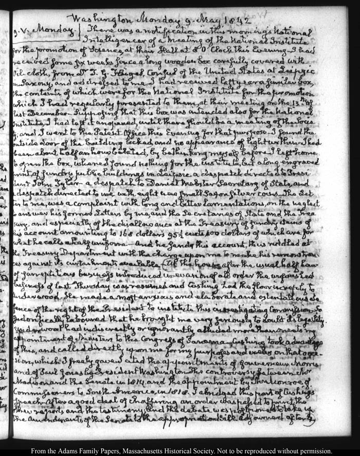 View full, authoritative transcriptions with page images of the diaries at John Quincy Adams Digital Diary part of the Primary Source Cooperative at the MHS.