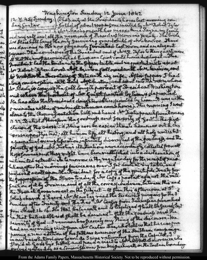 View full, authoritative transcriptions with page images of the diaries at John Quincy Adams Digital Diary part of the Primary Source Cooperative at the MHS.