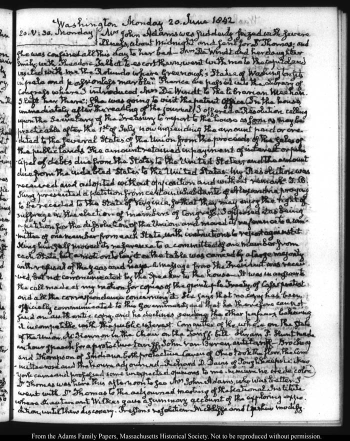 View full, authoritative transcriptions with page images of the diaries at John Quincy Adams Digital Diary part of the Primary Source Cooperative at the MHS.