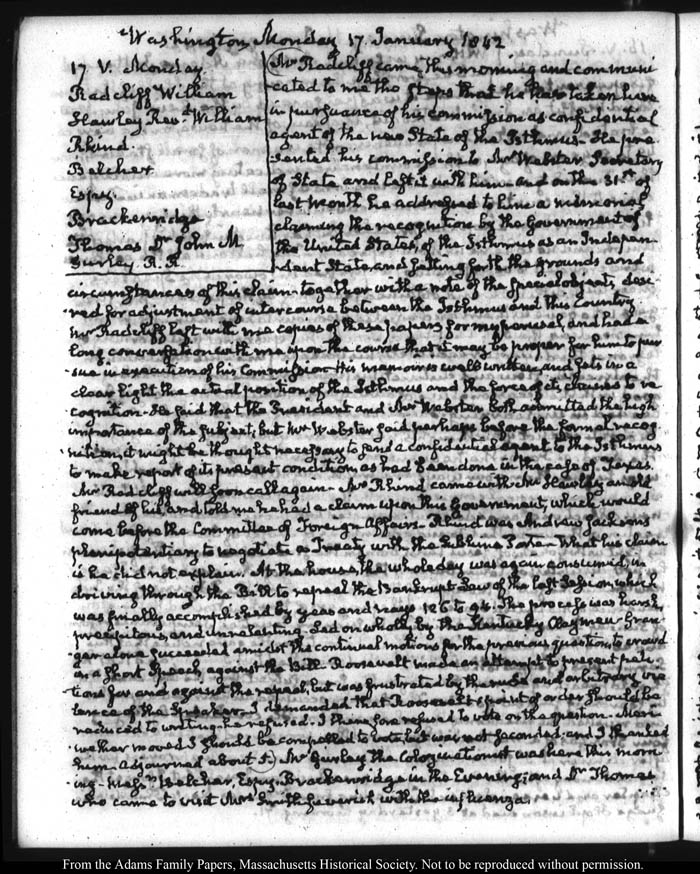View full, authoritative transcriptions with page images of the diaries at John Quincy Adams Digital Diary part of the Primary Source Cooperative at the MHS.