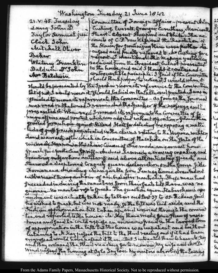 View full, authoritative transcriptions with page images of the diaries at John Quincy Adams Digital Diary part of the Primary Source Cooperative at the MHS.