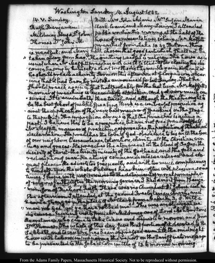 View full, authoritative transcriptions with page images of the diaries at John Quincy Adams Digital Diary part of the Primary Source Cooperative at the MHS.