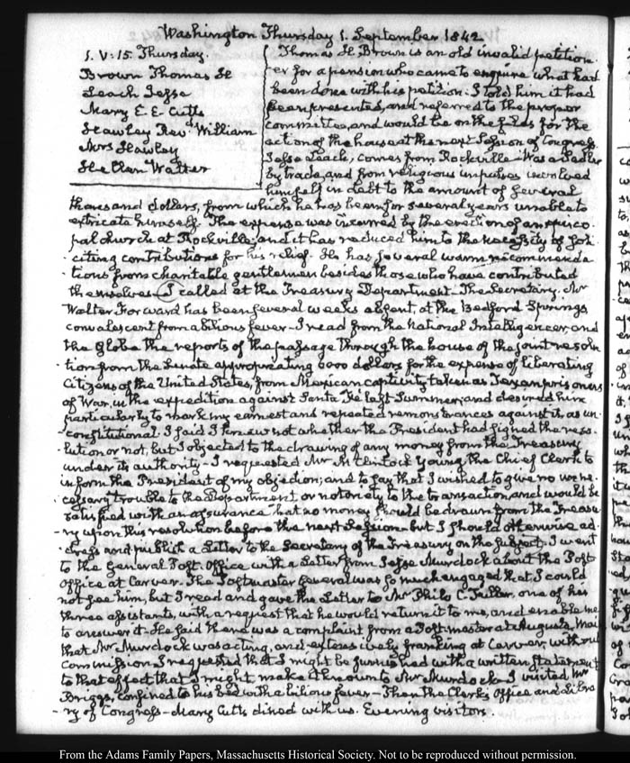 View full, authoritative transcriptions with page images of the diaries at John Quincy Adams Digital Diary part of the Primary Source Cooperative at the MHS.