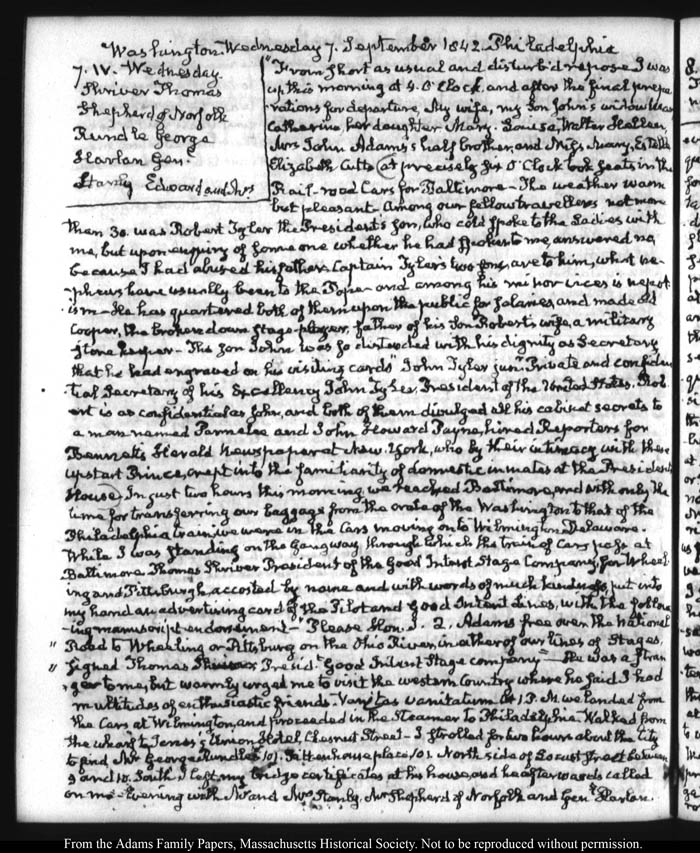 View full, authoritative transcriptions with page images of the diaries at John Quincy Adams Digital Diary part of the Primary Source Cooperative at the MHS.