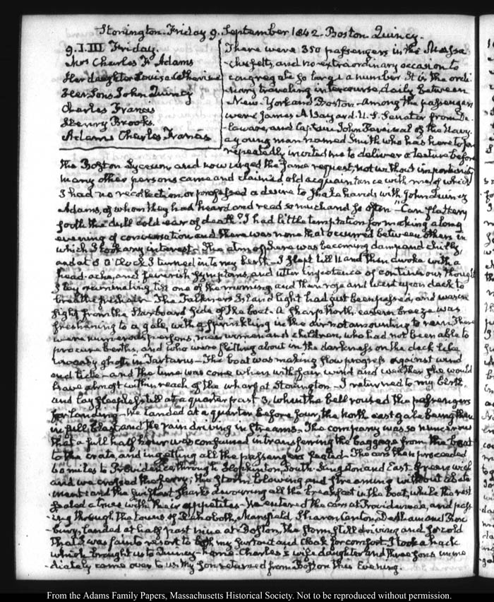 View full, authoritative transcriptions with page images of the diaries at John Quincy Adams Digital Diary part of the Primary Source Cooperative at the MHS.