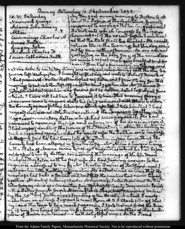 View full, authoritative transcriptions with page images of the diaries at John Quincy Adams Digital Diary part of the Primary Source Cooperative at the MHS.