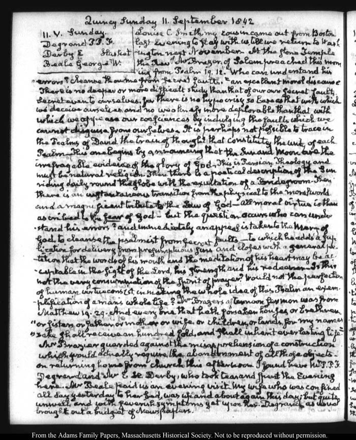 View full, authoritative transcriptions with page images of the diaries at John Quincy Adams Digital Diary part of the Primary Source Cooperative at the MHS.