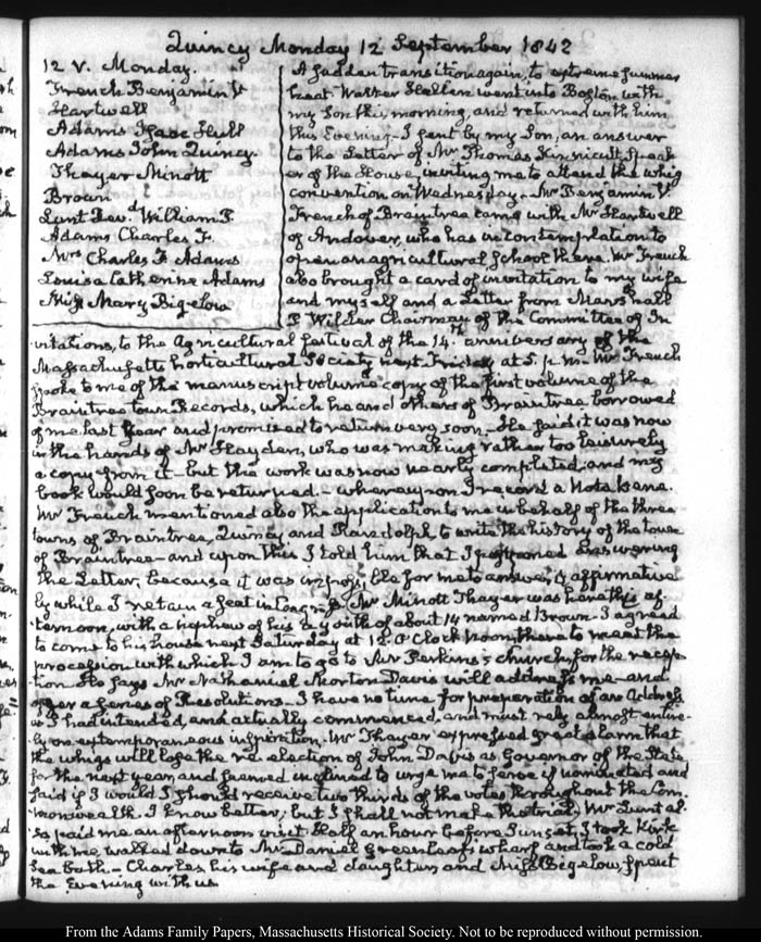 View full, authoritative transcriptions with page images of the diaries at John Quincy Adams Digital Diary part of the Primary Source Cooperative at the MHS.