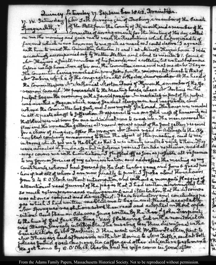 View full, authoritative transcriptions with page images of the diaries at John Quincy Adams Digital Diary part of the Primary Source Cooperative at the MHS.