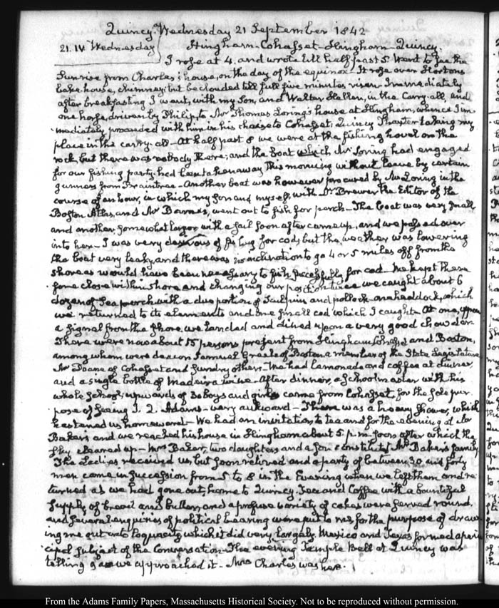 View full, authoritative transcriptions with page images of the diaries at John Quincy Adams Digital Diary part of the Primary Source Cooperative at the MHS.