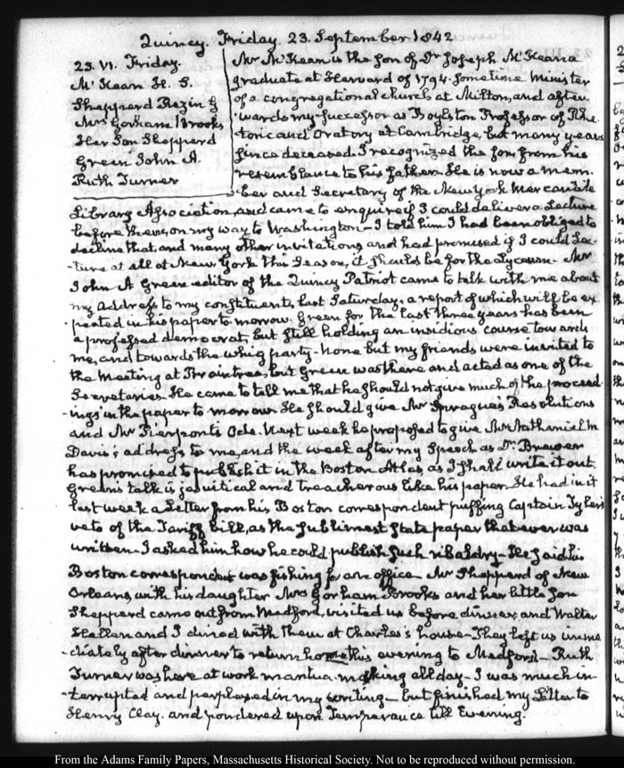 View full, authoritative transcriptions with page images of the diaries at John Quincy Adams Digital Diary part of the Primary Source Cooperative at the MHS.