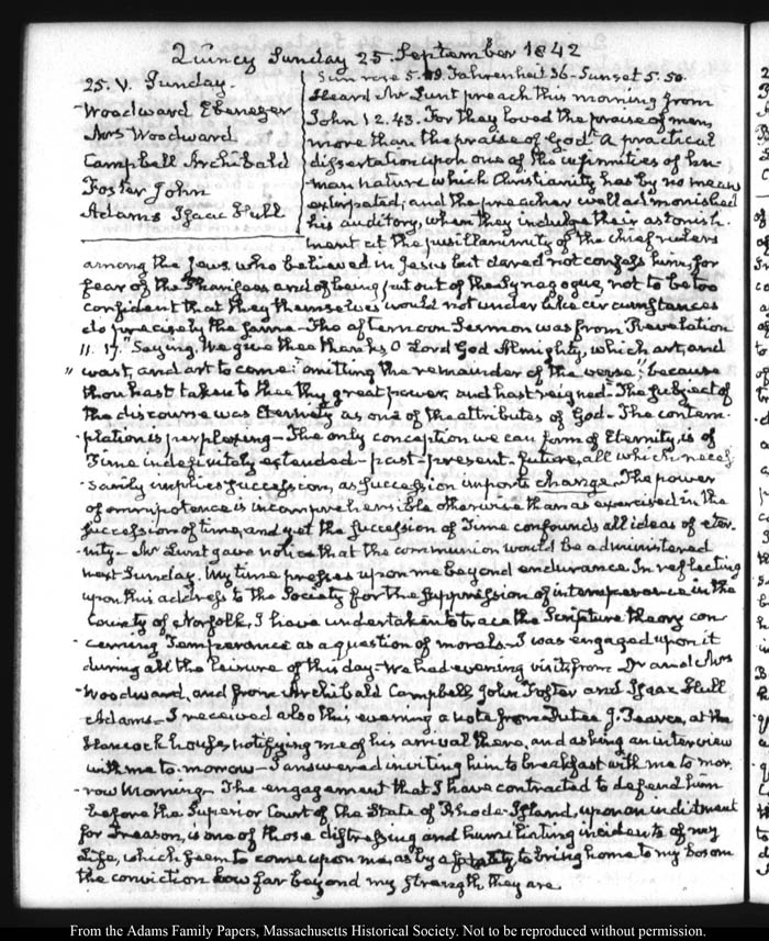 View full, authoritative transcriptions with page images of the diaries at John Quincy Adams Digital Diary part of the Primary Source Cooperative at the MHS.