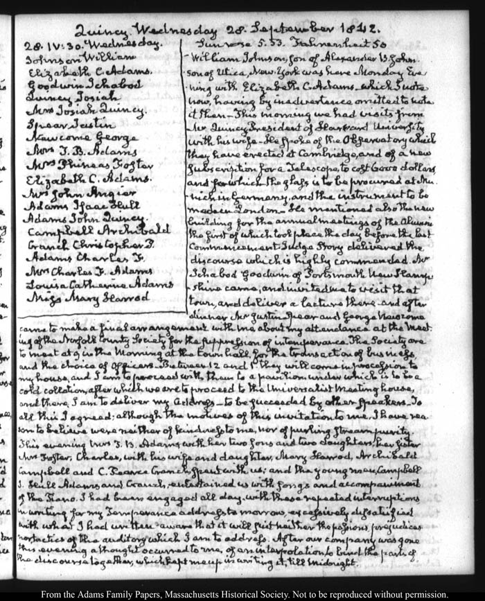 View full, authoritative transcriptions with page images of the diaries at John Quincy Adams Digital Diary part of the Primary Source Cooperative at the MHS.