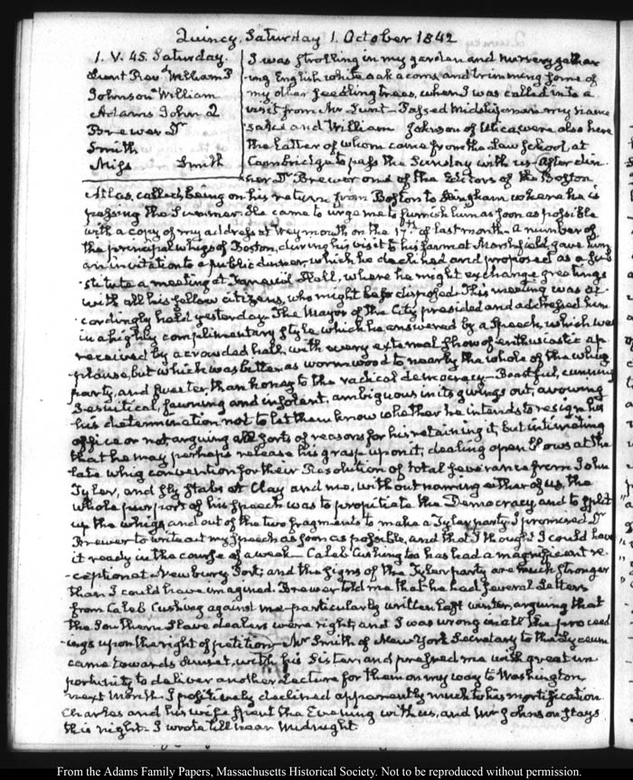 View full, authoritative transcriptions with page images of the diaries at John Quincy Adams Digital Diary part of the Primary Source Cooperative at the MHS.