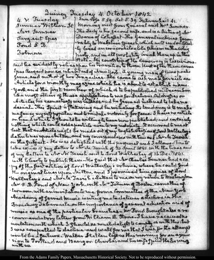 View full, authoritative transcriptions with page images of the diaries at John Quincy Adams Digital Diary part of the Primary Source Cooperative at the MHS.