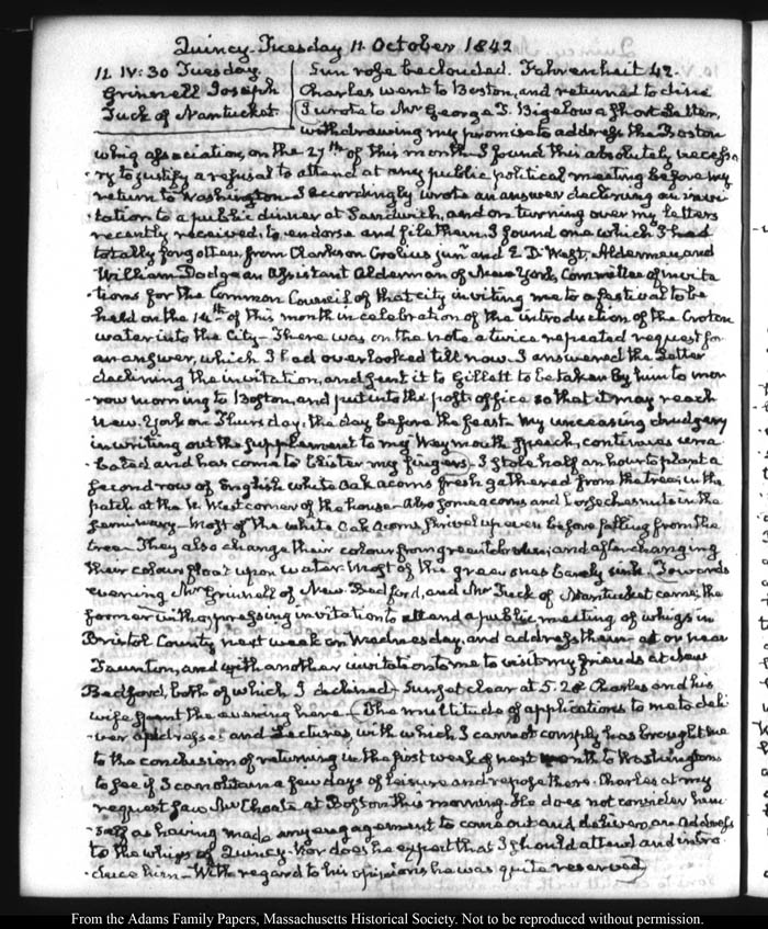 View full, authoritative transcriptions with page images of the diaries at John Quincy Adams Digital Diary part of the Primary Source Cooperative at the MHS.