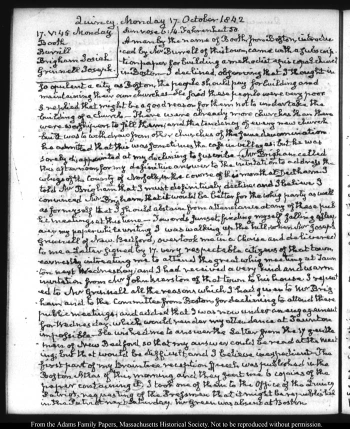 View full, authoritative transcriptions with page images of the diaries at John Quincy Adams Digital Diary part of the Primary Source Cooperative at the MHS.