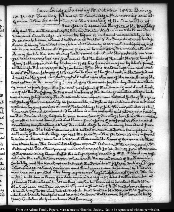 View full, authoritative transcriptions with page images of the diaries at John Quincy Adams Digital Diary part of the Primary Source Cooperative at the MHS.