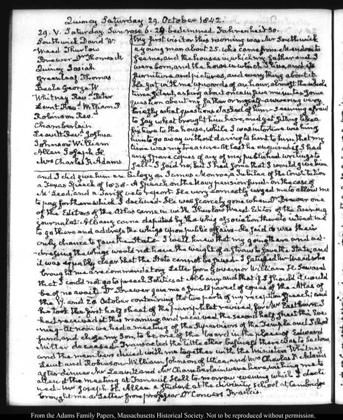 View full, authoritative transcriptions with page images of the diaries at John Quincy Adams Digital Diary part of the Primary Source Cooperative at the MHS.