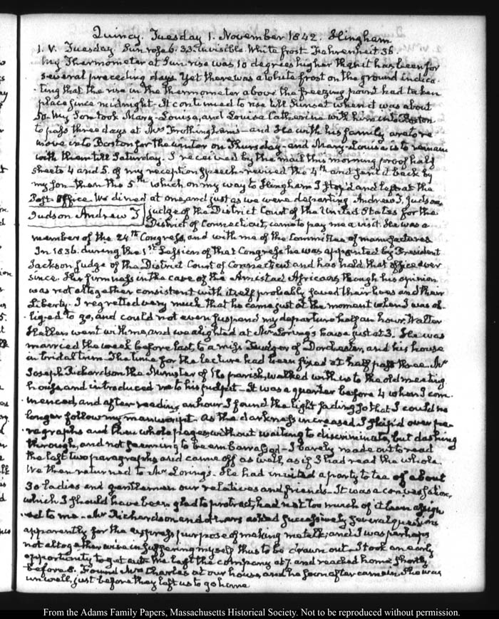 View full, authoritative transcriptions with page images of the diaries at John Quincy Adams Digital Diary part of the Primary Source Cooperative at the MHS.