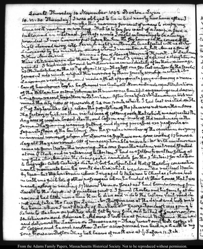 View full, authoritative transcriptions with page images of the diaries at John Quincy Adams Digital Diary part of the Primary Source Cooperative at the MHS.