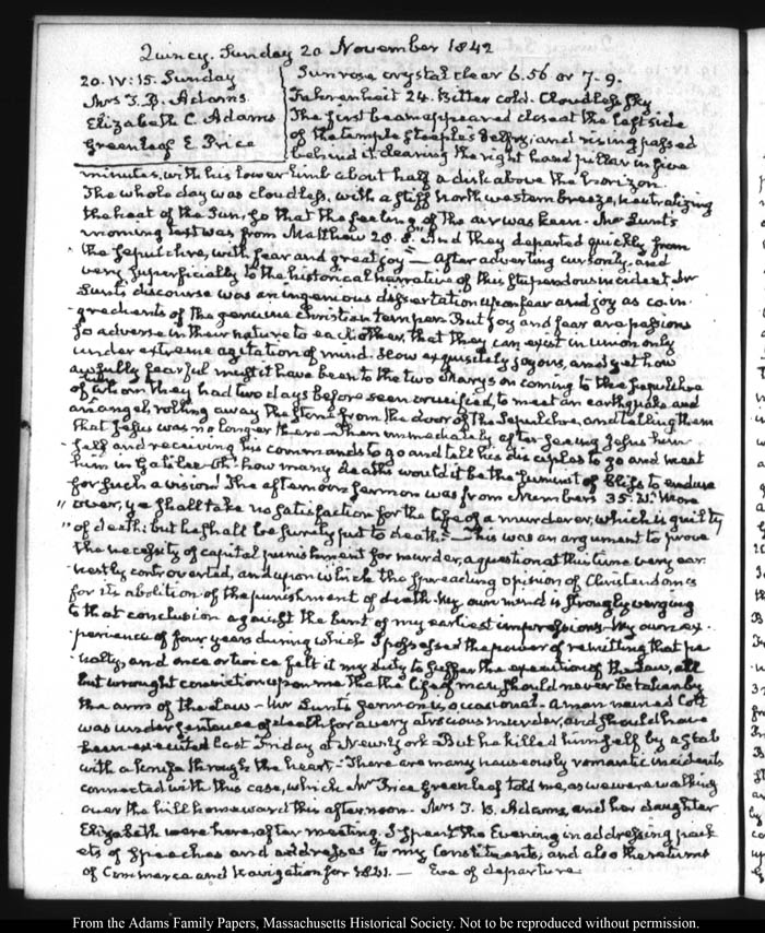 View full, authoritative transcriptions with page images of the diaries at John Quincy Adams Digital Diary part of the Primary Source Cooperative at the MHS.