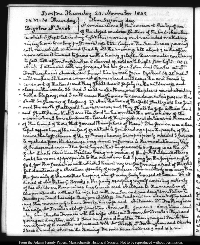 View full, authoritative transcriptions with page images of the diaries at John Quincy Adams Digital Diary part of the Primary Source Cooperative at the MHS.