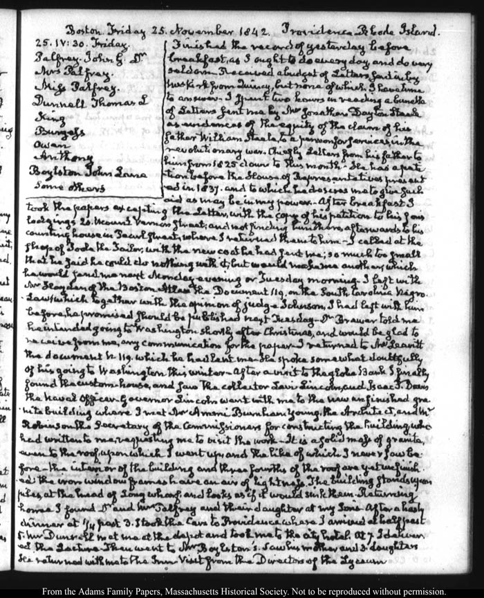 View full, authoritative transcriptions with page images of the diaries at John Quincy Adams Digital Diary part of the Primary Source Cooperative at the MHS.