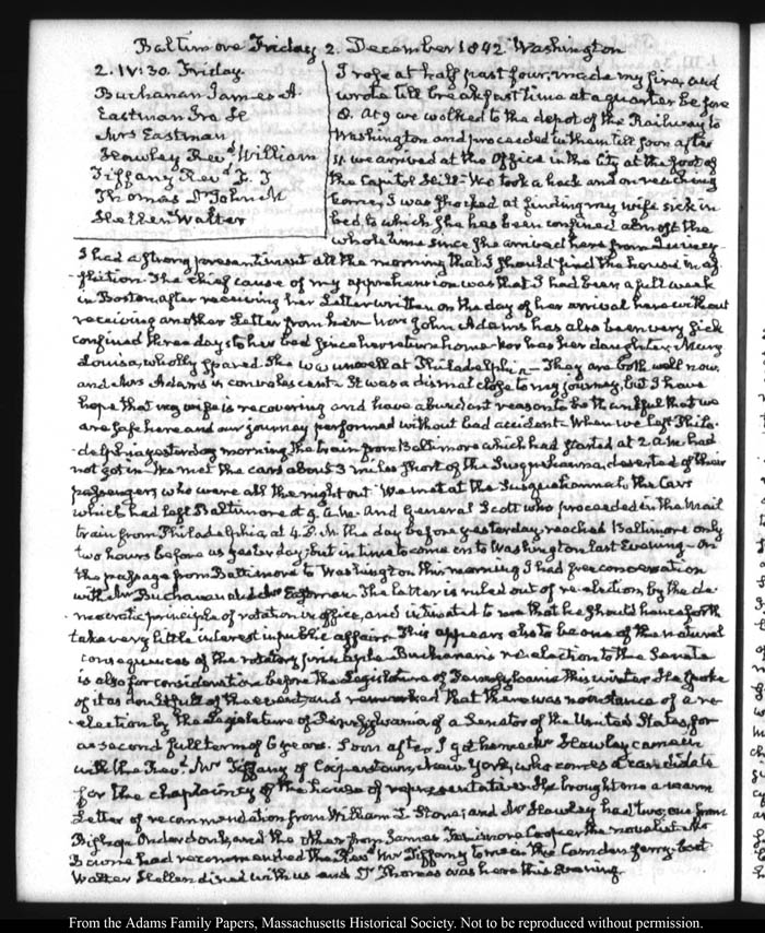 View full, authoritative transcriptions with page images of the diaries at John Quincy Adams Digital Diary part of the Primary Source Cooperative at the MHS.