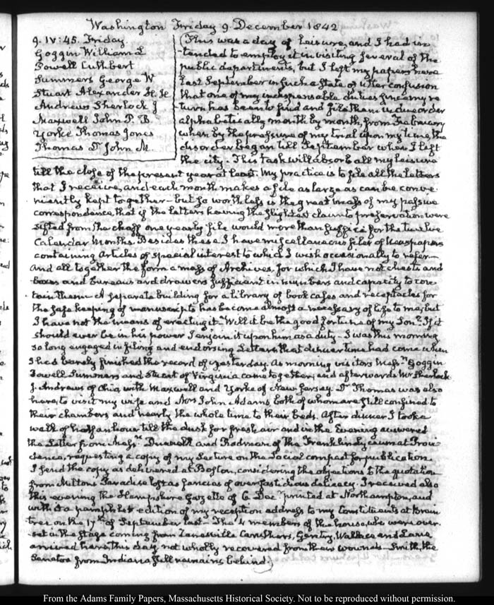 View full, authoritative transcriptions with page images of the diaries at John Quincy Adams Digital Diary part of the Primary Source Cooperative at the MHS.