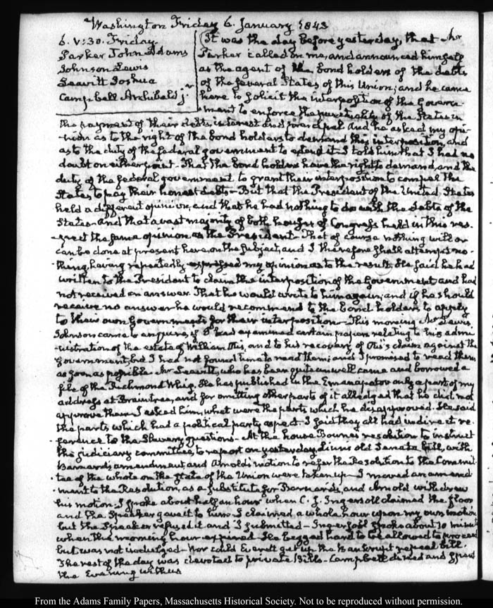 View full, authoritative transcriptions with page images of the diaries at John Quincy Adams Digital Diary part of the Primary Source Cooperative at the MHS.