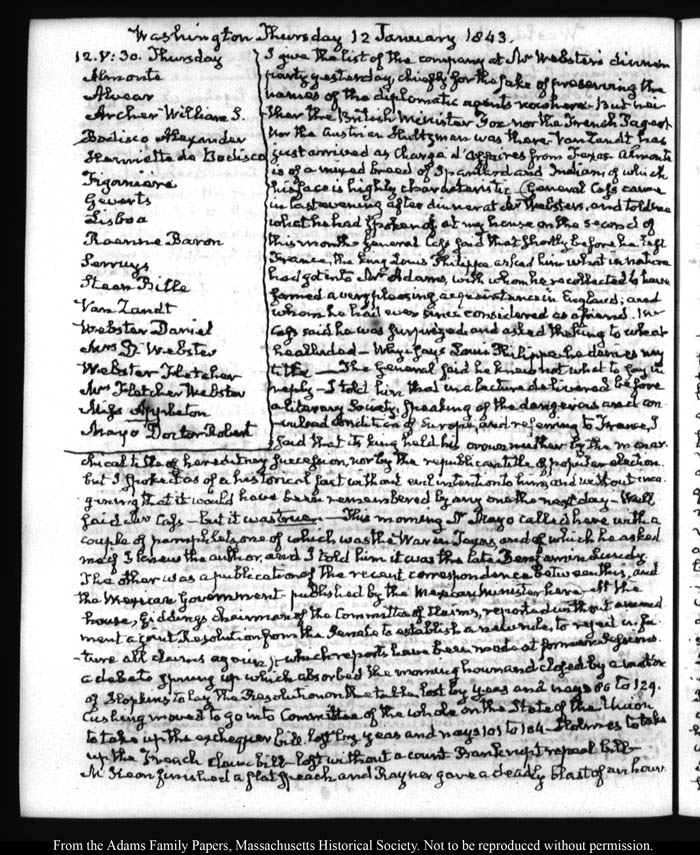 View full, authoritative transcriptions with page images of the diaries at John Quincy Adams Digital Diary part of the Primary Source Cooperative at the MHS.